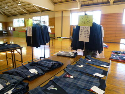 11月18日(土)本校武道場にて、制服リユースバザーを開催しました!男女の夏服・冬服の制服やシャツの他、校章、ボタン、ネクタイ、リボン等の小物類も販売。なんと0円コーナーも用意され、当日はたくさんの方に来ていただけました!ボランティアの皆さん、PTAの皆さんに支えていただいたおかげです!準備から当日の運営まで、本当にありがとうございました!!